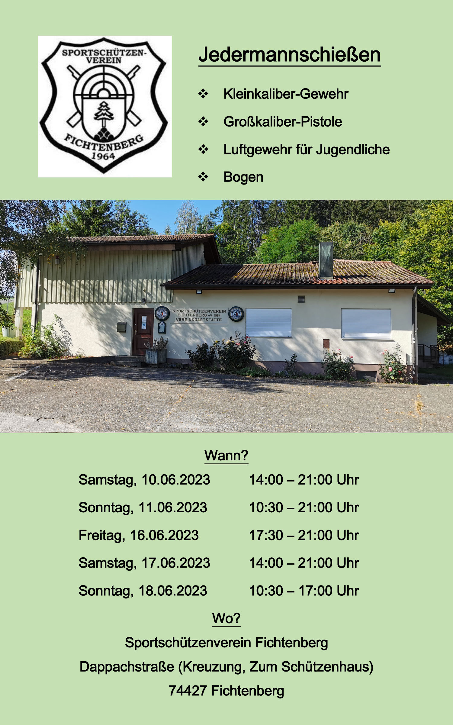 Sportschützenverein Fichtenberg e.V.Dappachstraße Kreuzung zum Schützenhaus74427 Fichtenberge-Mail: